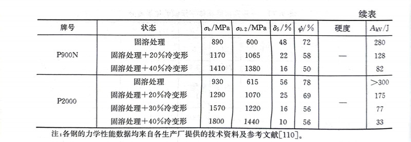 Staballoy AG17 和Dataalloy 2鋼(gang)是同(tong)一(yi)生產廠的(de)產品。Staballoy AG17鋼(gang)具(ju)有高(gao)的(de)屈服(fu)強度和疲勞抗力,通過冷變形(xing)可以獲得高(gao)的(de)力學性能(表9.71)。StaballoyAG17還(huan)具(ju)有高(gao)的(de)組(zu)織穩定性,其(qi)磁導率(lv)低(di)于(yu)1.005H/m。