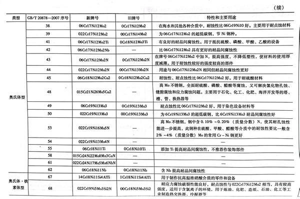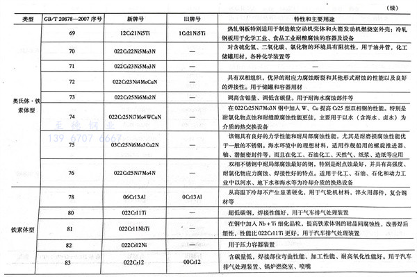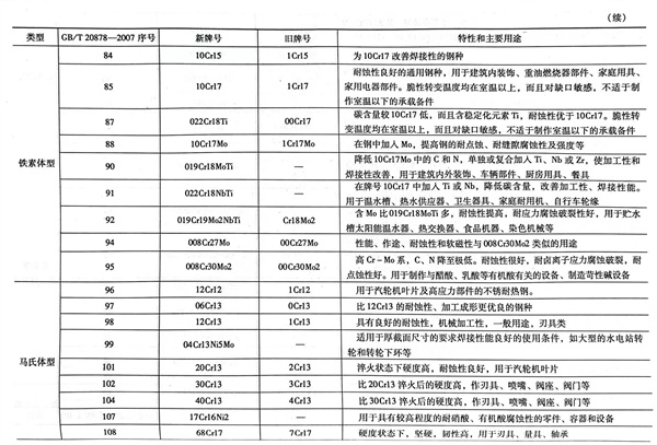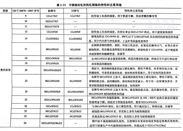 不銹鋼冷軋和熱軋鋼板(ban)的特性和主要用途(見表1-11)