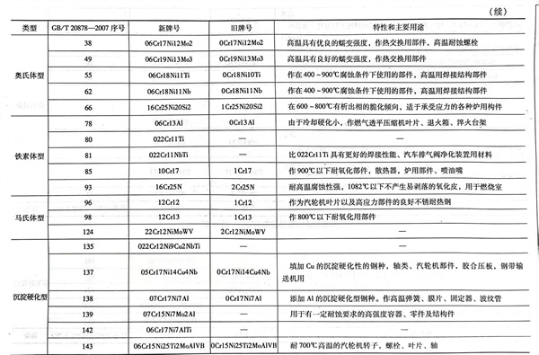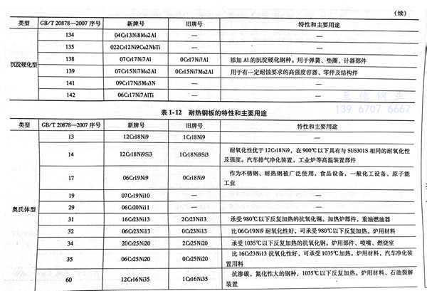 耐熱鋼板的特性和主(zhu)要用途見表(biao)1-12。
