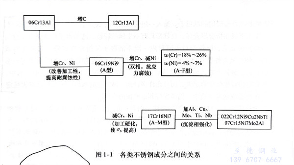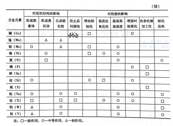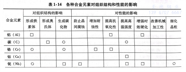 上述合(he)金(jin)元素(su)(su)對(dui)(dui)鋼(gang)(gang)的(de)作用(yong)(yong)不(bu)是(shi)簡單(dan)的(de)疊(die)加(jia)(jia),也不(bu)是(shi)相互抵消的(de)。它們(men)相互之間(jian)有(you)時會發生新的(de)物理化學作用(yong)(yong),往往會引起強(qiang)化力(li)學性(xing)能(neng)的(de)作用(yong)(yong)。各種合(he)金(jin)元素(su)(su)對(dui)(dui)不(bu)銹(xiu)鋼(gang)(gang)組織結構和性(xing)能(neng)的(de)影響見表1-14,亦可(ke)(ke)見圖(tu)1-1、圖(tu)1-2。從表中可(ke)(ke)以看(kan)出,合(he)金(jin)元素(su)(su)對(dui)(dui)不(bu)銹(xiu)鋼(gang)(gang)組織的(de)影響基本上分三(san)大(da)類:第(di)一(yi)類是(shi)形成鐵(tie)素(su)(su)體的(de)元素(su)(su),有(you)鉻、硅(gui)、鋁、鉬、鈦、鈮(ni)等(deng)(deng)(deng);第(di)二類是(shi)形成奧氏體的(de)元素(su)(su),有(you)碳、氮(dan)、鎳、錳(meng)、銅等(deng)(deng)(deng),其中碳和氮(dan)的(de)作用(yong)(yong)程(cheng)度最大(da);第(di)三(san)類是(shi)形成碳化物的(de)元素(su)(su),有(you)鈮(ni)、鈦、碳、鉻、鎢、錳(meng)、鉬等(deng)(deng)(deng)。加(jia)(jia)入(ru)銅、鋁、鈦、鈮(ni)、氮(dan)等(deng)(deng)(deng)元素(su)(su)能(neng)促使鋼(gang)(gang)產生彌散(san)硬化,從而提高(gao)鋼(gang)(gang)的(de)熱(re)強(qiang)性(xing)。