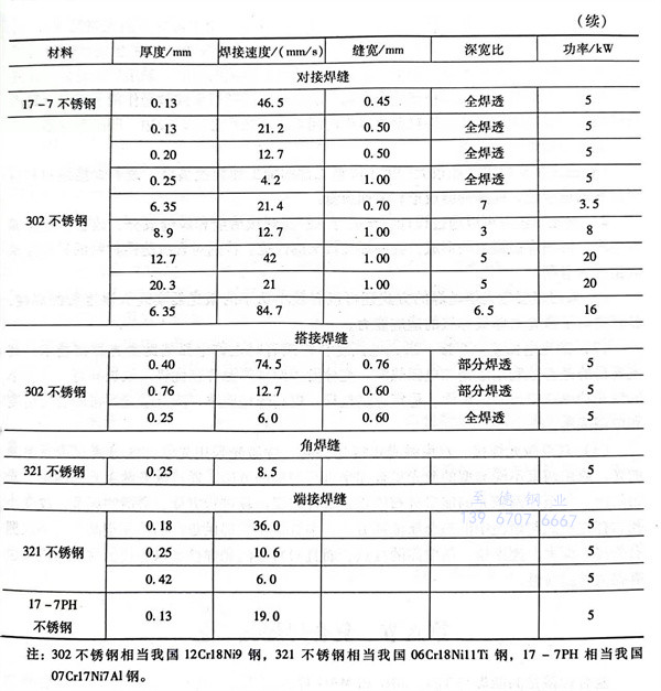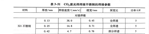 用激光焊焊接奧氏體型不銹鋼板,從薄板到中厚度板(0.1~12mm),均可達到性能良好且焊接接頭外觀和成形美觀的效果。表3-51為二氧化碳激光焊焊接不銹鋼的焊接參數。