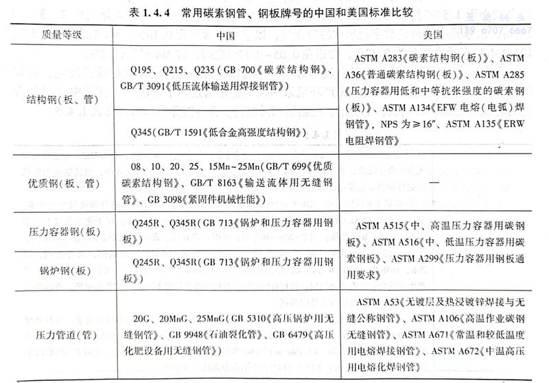常用碳素(su)鋼管、鋼板(ban)牌號的(de)中國和(he)美國標準比(bi)較見(jian)表1.4.4。