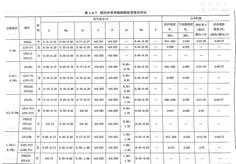 國內外常(chang)用(yong)鉻(ge)鉬鋼(gang)化(hua)學成分(fen)對(dui)比見(jian)表1.4.7。