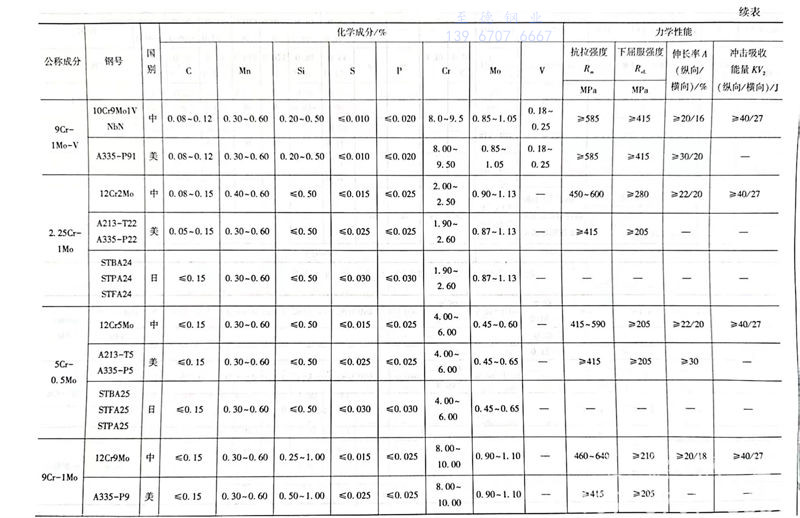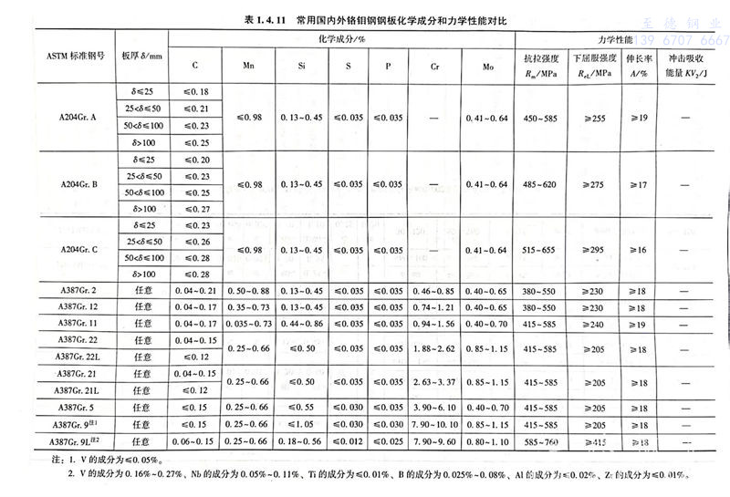 常用國內外鉻鉬鋼(gang)鋼(gang)板化學成分和力(li)學性能對比(bi)見表1.4.11。