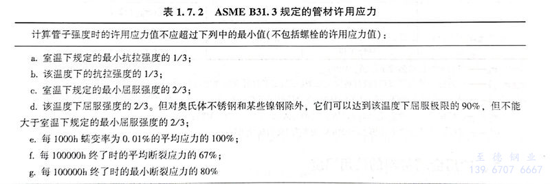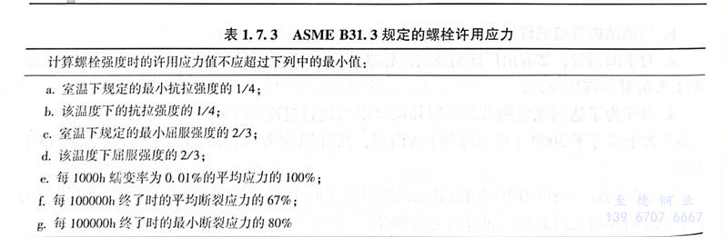 ASME B31.3 規定的管材許用應力見表1.7.2,規定的螺栓許用應力見表1.7.3。