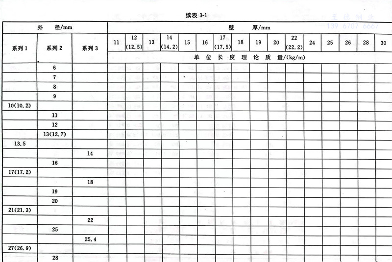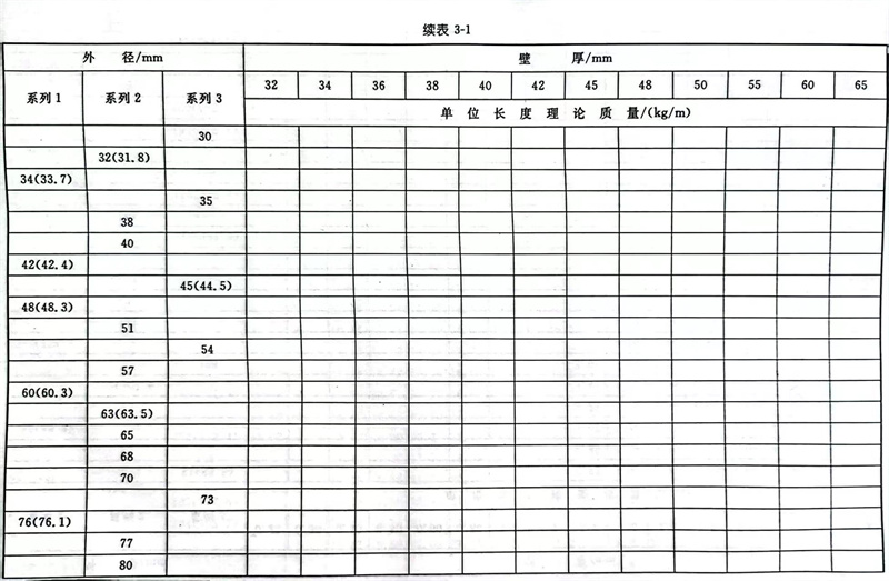 普通鋼管(guan)外徑分為系列1、系列2和系列3,詳見表3-1。