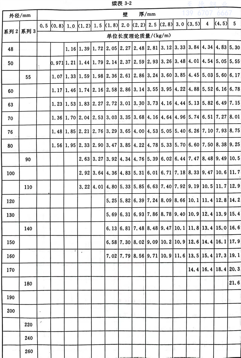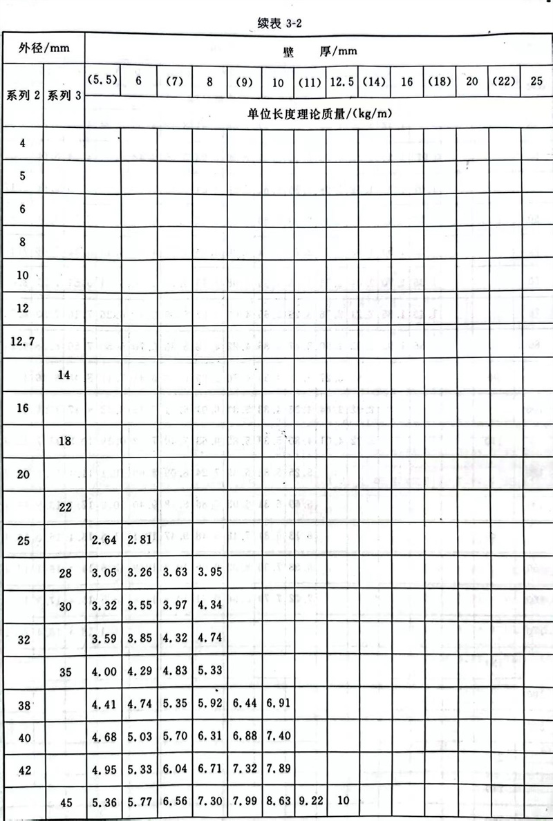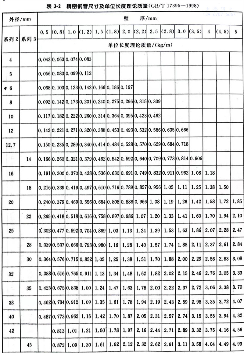 精密鋼管(guan)尺寸及單位(wei)長度理論質量(liang)見表3-2。