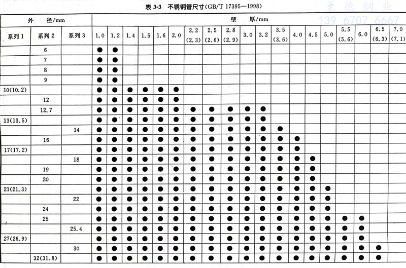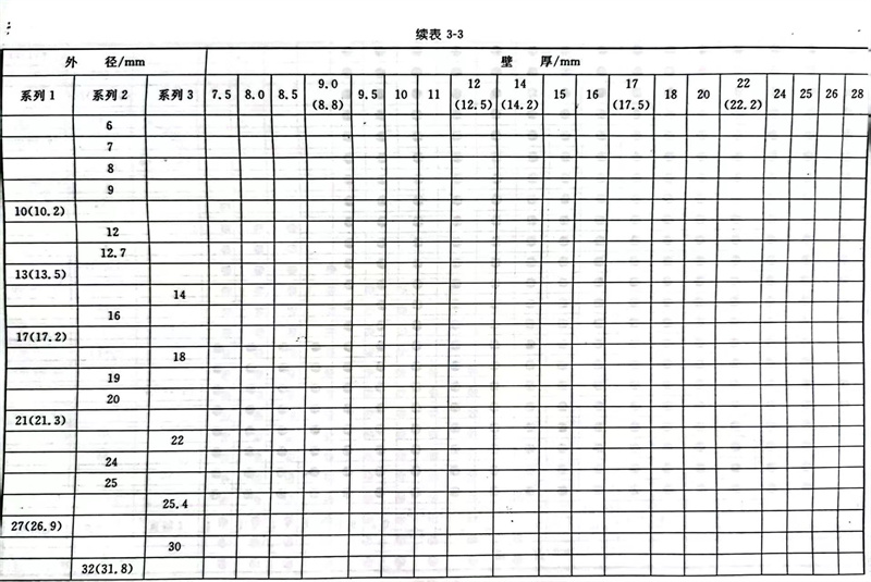 不銹鋼管(guan)外徑分為系列1、系列2和系列3,詳見表3-3。