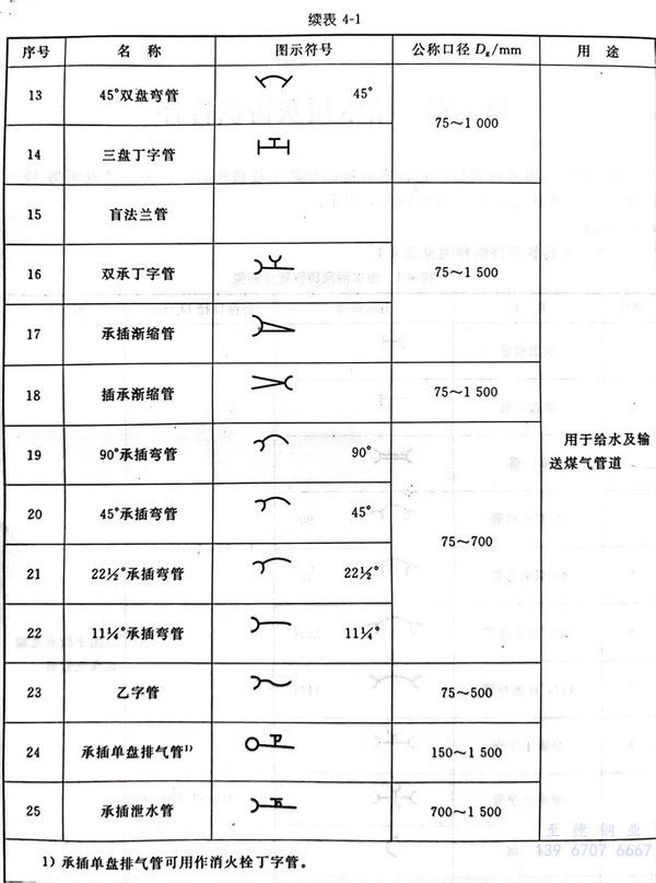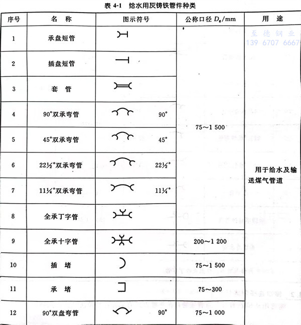 給水用(yong)灰鑄鐵管(guan)件的種類(lei)見表4-1。