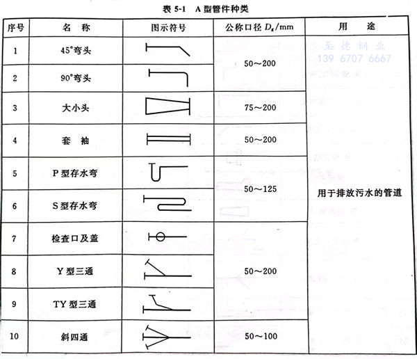 A型灰(hui)鑄鐵(tie)管(guan)件(jian)的種(zhong)類見(jian)表5-1。