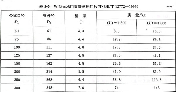a. W 型無(wu)承(cheng)口直(zhi)管承(cheng)插(cha)口型式見(jian)圖 5-6 ,尺寸見(jian)表 5-6 。
