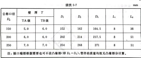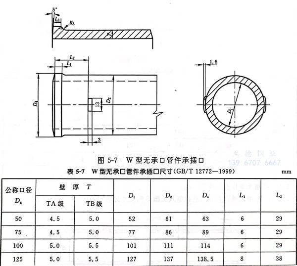 b. W 型無(wu)承口管件承插口型式見圖 5-7 ,尺寸見表 5-7 。