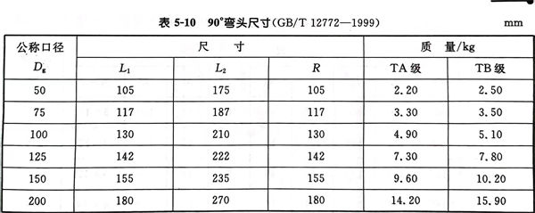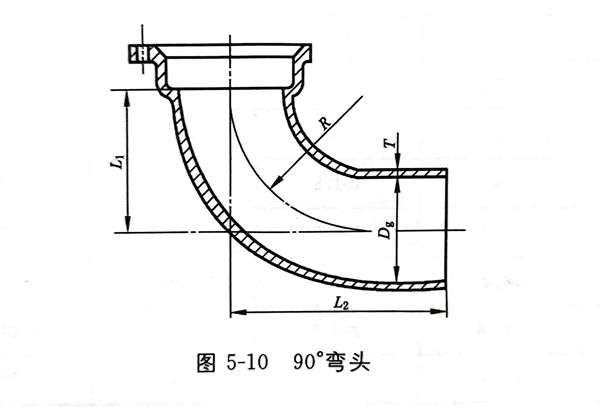 90°彎頭型式見(jian)圖(tu) 5-10 ,尺寸(cun)見(jian)表(biao) 5-10 。