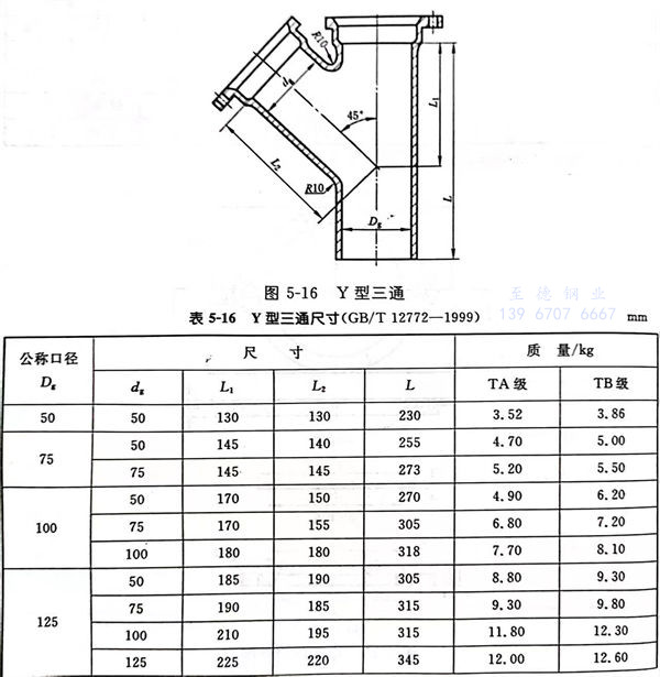 Y型三通型式見(jian)圖 5-16,尺寸見(jian)表(biao) 5-16。