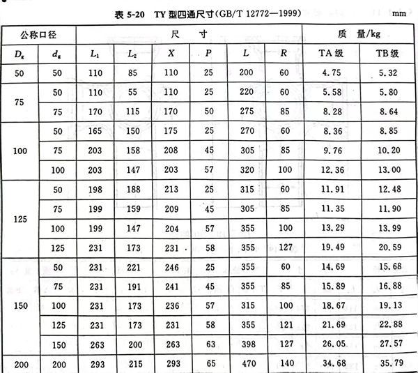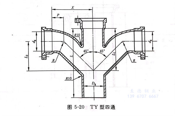 TY型四通型式見圖 5-20,尺寸見表 5-20。