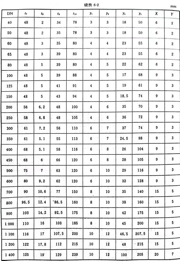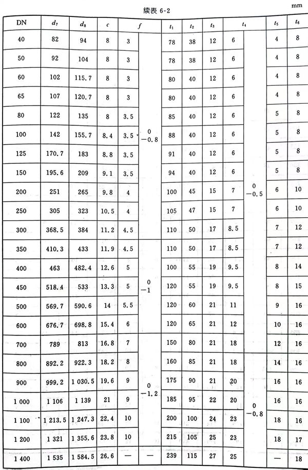 壓(ya)蘭尺寸(cun)允許偏(pian)差見表 6-8;壓(ya)蘭的法蘭尺寸(cun)允許偏(pian)差見規(gui)定。