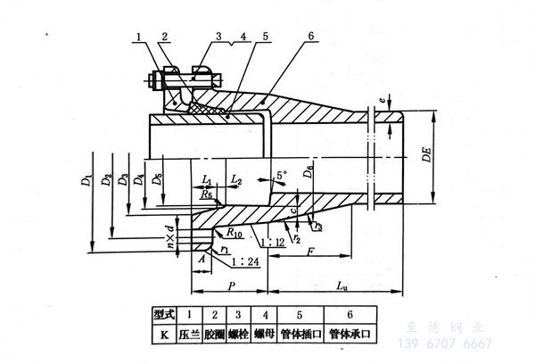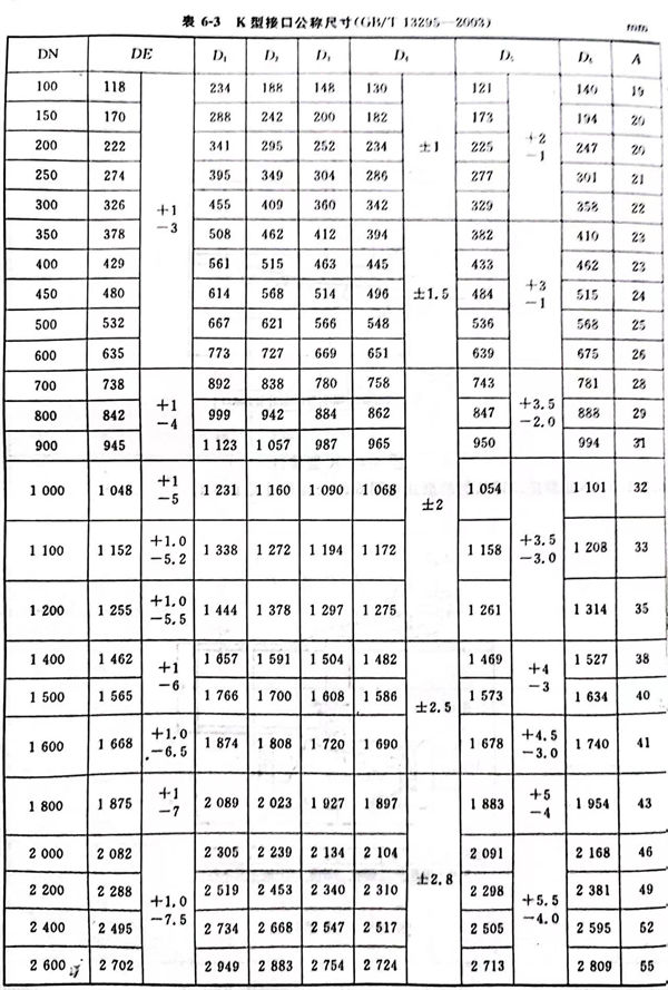 2. K 型接口球鐵管的型式見(jian)圖(tu)6-4,公稱(cheng)尺寸見(jian)表6-3;