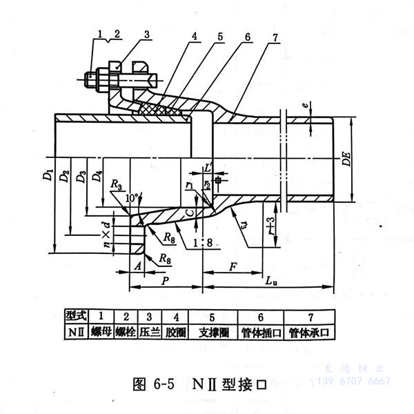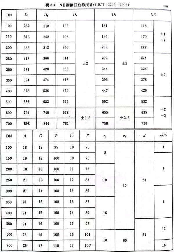 3. NⅡ 型(xing)接口球鐵管的型(xing)式見圖6-5,公稱尺寸見表6-4;