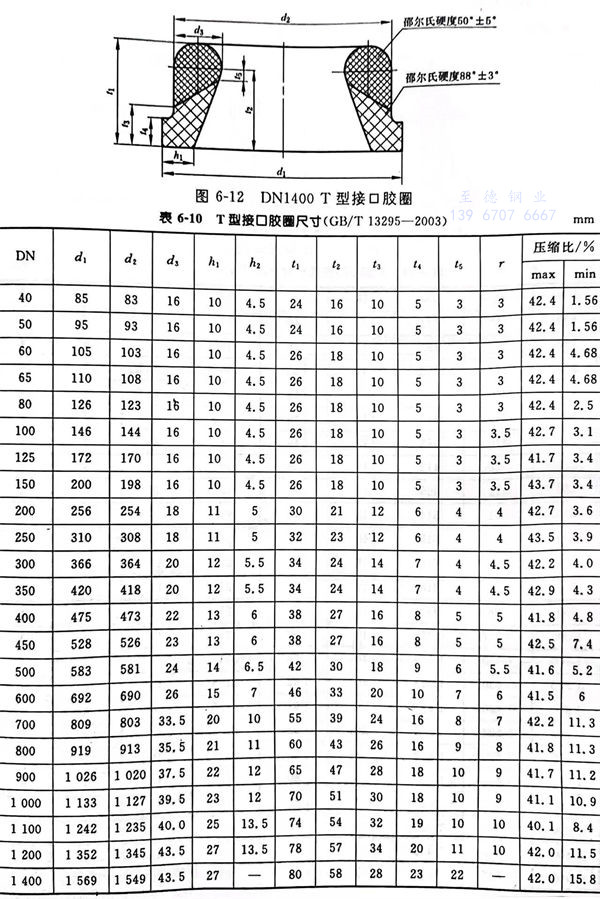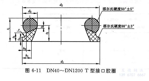 T 型接口用(yong)膠圈的型式見圖6-11 和圖6-12,尺寸(cun)見表6-10。