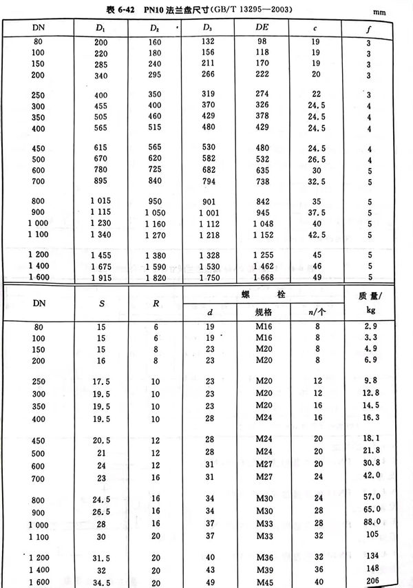 PN10法蘭盤型式見圖6-40,尺寸見表6-42。