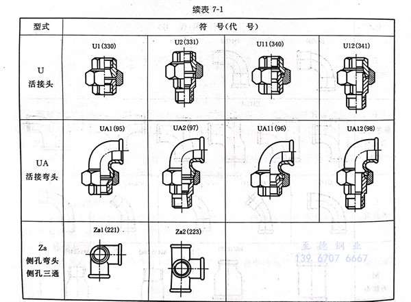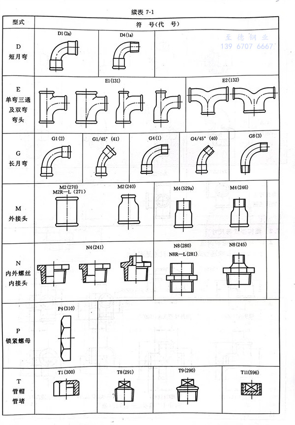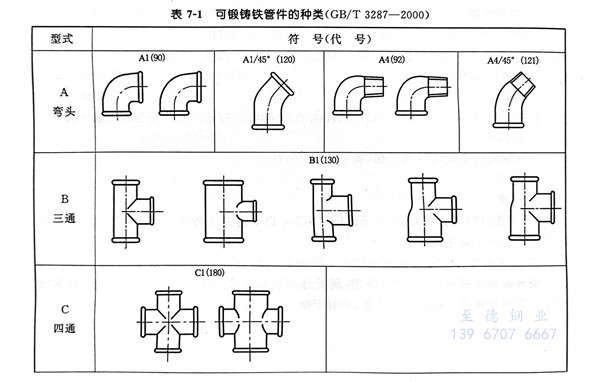 按結構型(xing)式劃分的可鍛鑄鐵管件種類見表7-1。表中的規定符號(hao)(hao)(代號(hao)(hao))與管路識(shi)別有關,可以(yi)用(yong)于標記。
