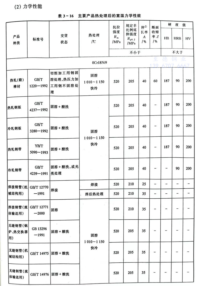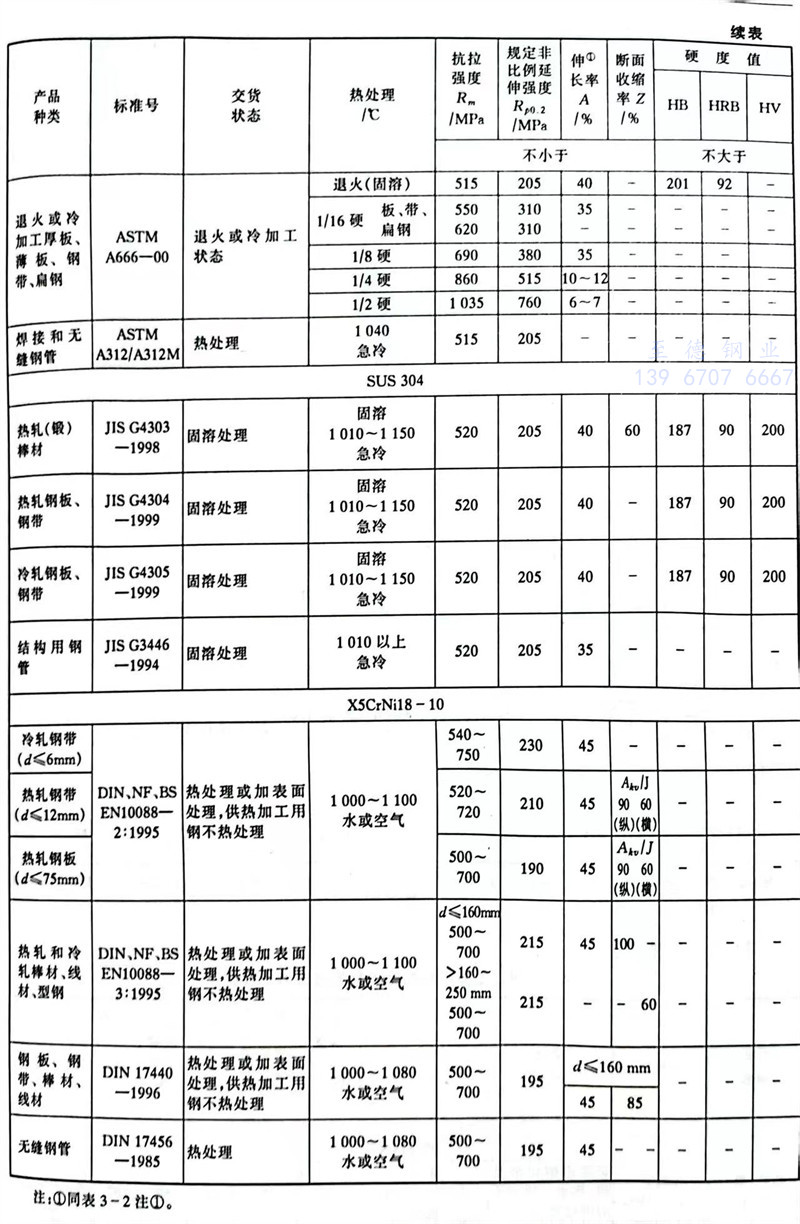 是奧氏體型不銹鋼(gang)中生產量(liang)和(he)(he)使用量(liang)最(zui)大的(de)牌號之一。具有(you)(you)(you)優良的(de)耐腐(fu)(fu)蝕性能(neng)以(yi)及冷加工沖壓(ya)性能(neng)。對氧化性酸(suan)(如硝酸(suan))具有(you)(you)(you)很(hen)(hen)強的(de)耐腐(fu)(fu)蝕性。對堿溶(rong)液(ye)及大部分有(you)(you)(you)機(ji)酸(suan)和(he)(he)無機(ji)酸(suan)亦有(you)(you)(you)一定的(de)耐腐(fu)(fu)蝕能(neng)力。低溫性能(neng)較好(hao),在-180℃條(tiao)件下強度、伸(shen)長率(lv)(lv)和(he)(he)斷(duan)面收(shou)縮率(lv)(lv)都很(hen)(hen)好(hao)。