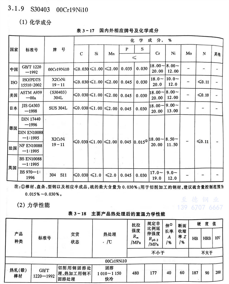 S30403 00Cr19Ni10 不銹鋼主要特性和用途