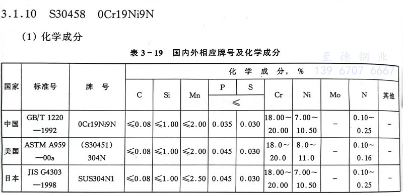 S30458 0Cr19Ni9N 不銹鋼主(zhu)要特(te)性(xing)和(he)用途