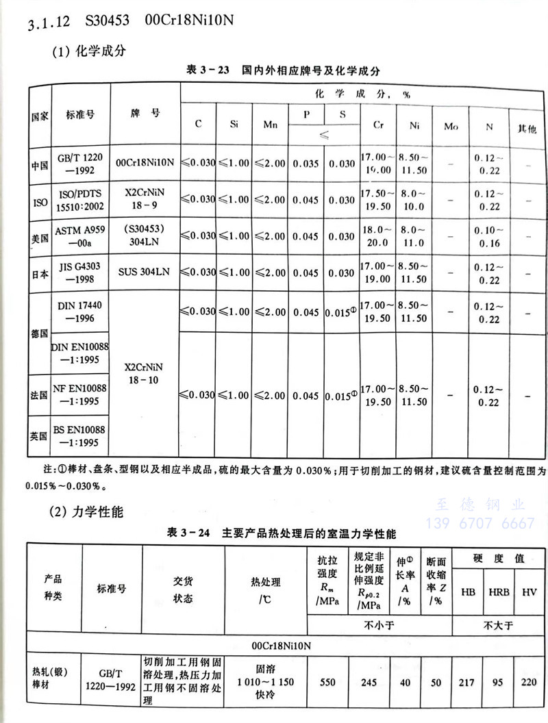 S30453 00Cr18Ni10N 不(bu)銹鋼主(zhu)要(yao)特性和用途