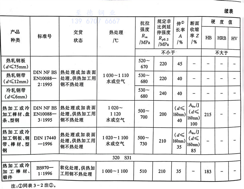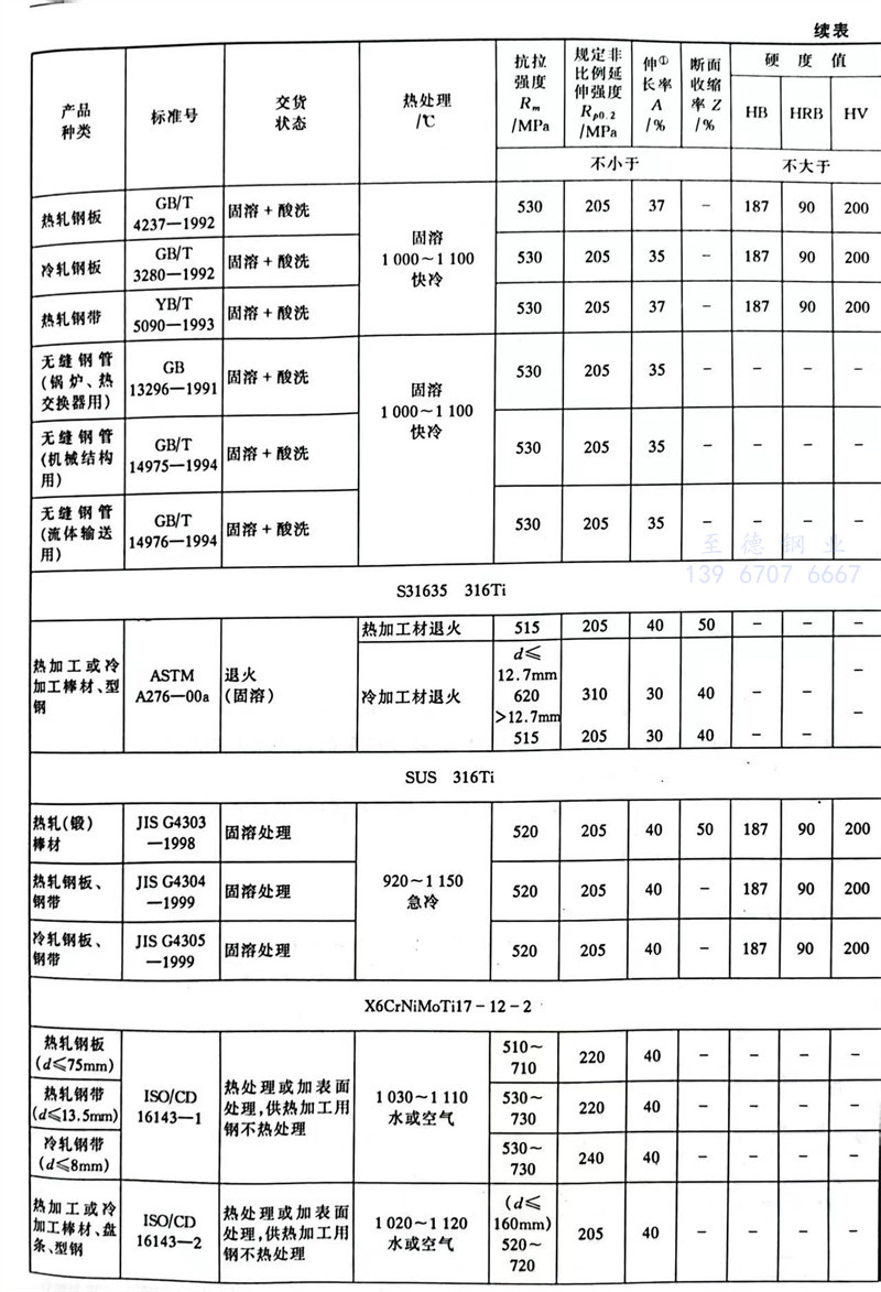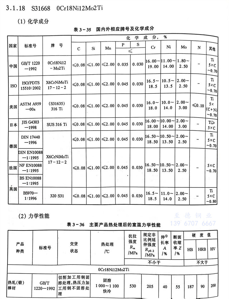 S31668 0Cr18Ni12Mo2Ti 不銹鋼主要特性和用途