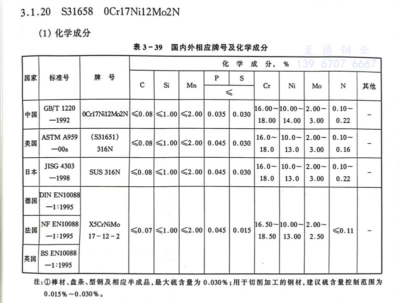 S31658 0Cr17Ni12Mo2N 不(bu)銹鋼(gang)主要特性和用途