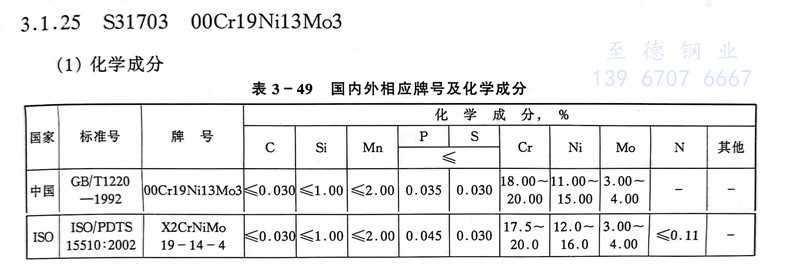S31703 00Cr19Ni13Mo3 不銹(xiu)鋼主要特性和(he)用途