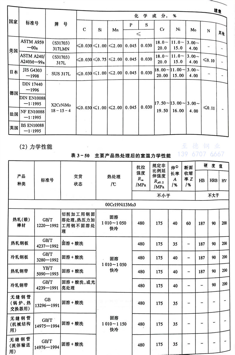 系將0Cr19Ni13Mo3不銹鋼的(de)含碳量降到(dao)≤0.03%,所以耐晶間腐蝕性能(neng)比0Cr19Ni13Mo3不銹鋼好。