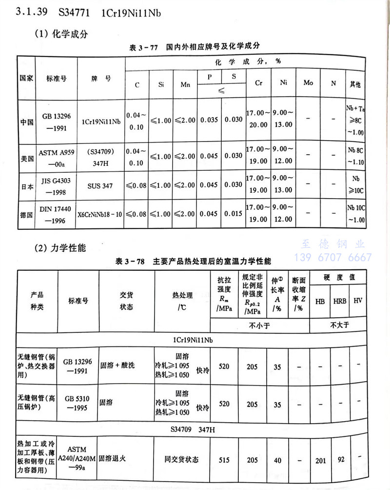 S34771 1Cr19Ni11Nb 不銹鋼主要特性和用(yong)途