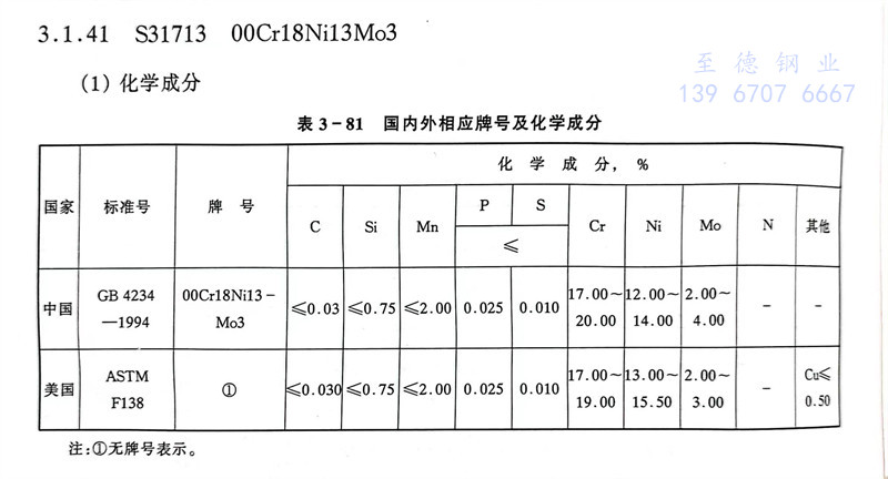S31713 00Cr18Ni13Mo3 不銹(xiu)鋼主要特(te)性和用途(tu)