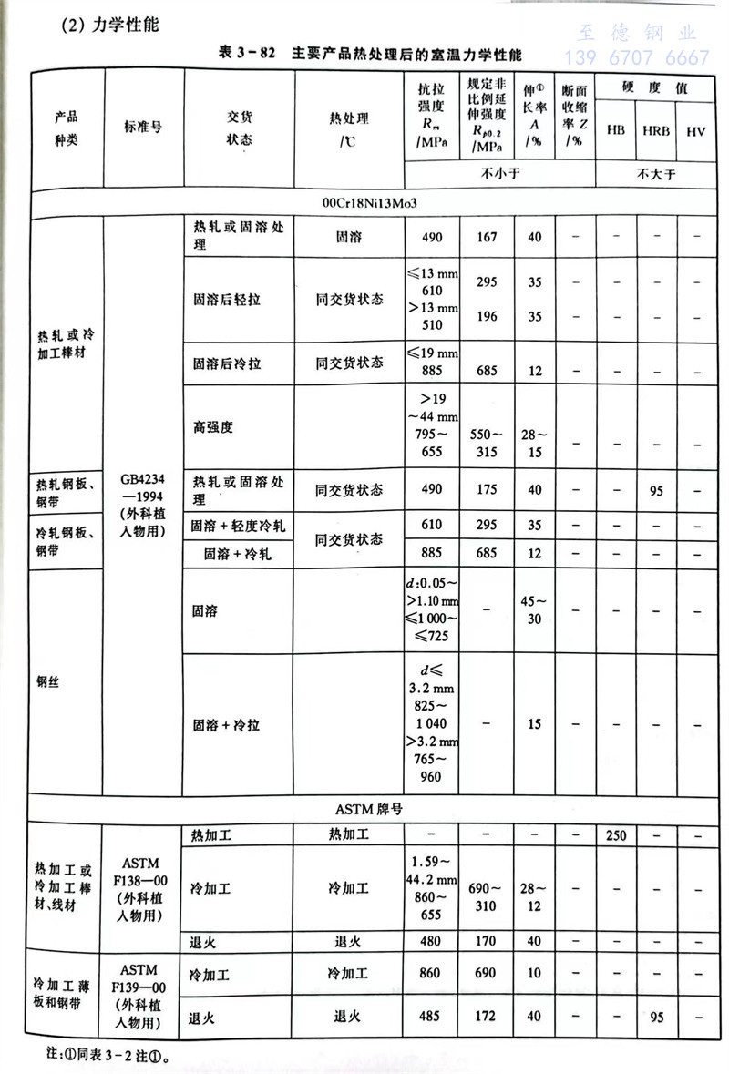 此鋼耐晶(jing)間腐蝕(shi)等性能(neng)比0Cr18Ni13Mo3 不(bu)銹鋼好,可用于(yu)0Cr18Ni13Mo3的使用條件下,制(zhi)造有嚴格(ge)耐晶(jing)間腐蝕(shi)要求(qiu)的設備。還常用于(yu)制(zhi)造外科植入物(wu)。
