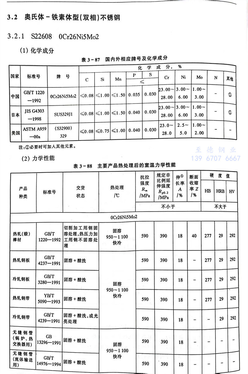 S22608 0Cr26Ni5Mo2 不銹鋼主要特性和用(yong)途(tu)