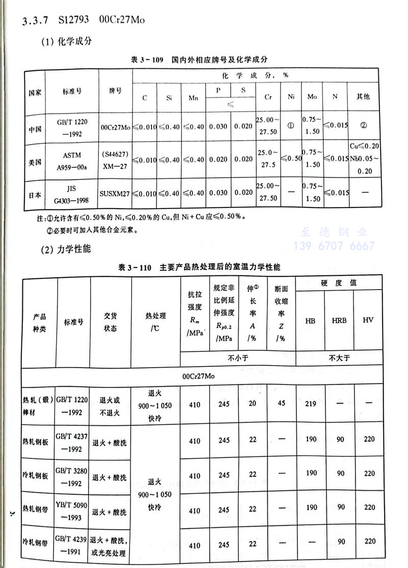 S12793 00Cr27Mo 不銹鋼主要特(te)性(xing)和用途