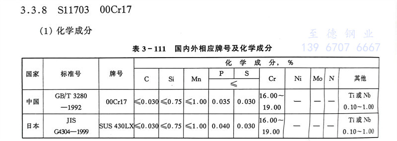 S11703 00Cr17 不(bu)銹(xiu)鋼主要特(te)性(xing)和用途(tu)
