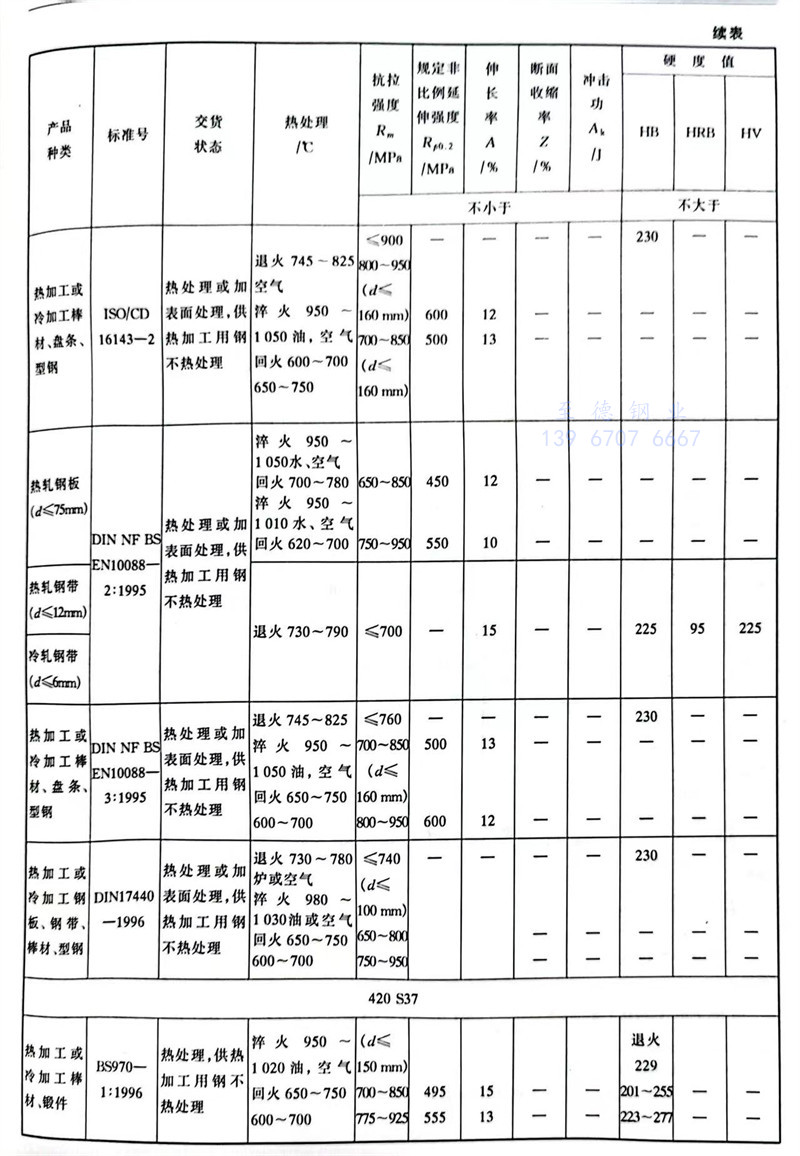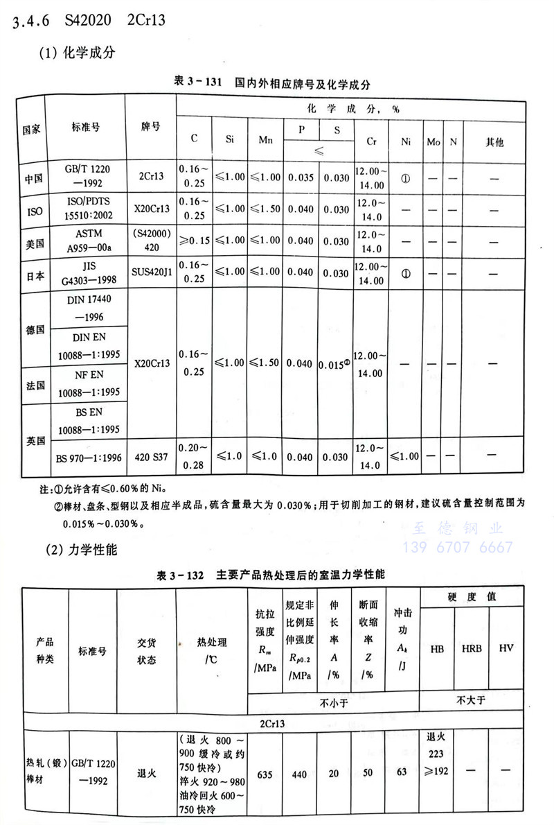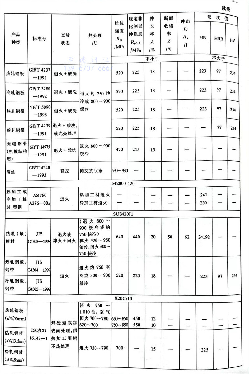 此鋼主要性能與1Cr13不銹鋼相似。由于含碳量比1Cr13不銹鋼稍高,其強度、硬度均比1Cr13不銹鋼稍高;而韌性、耐蝕性則稍低。