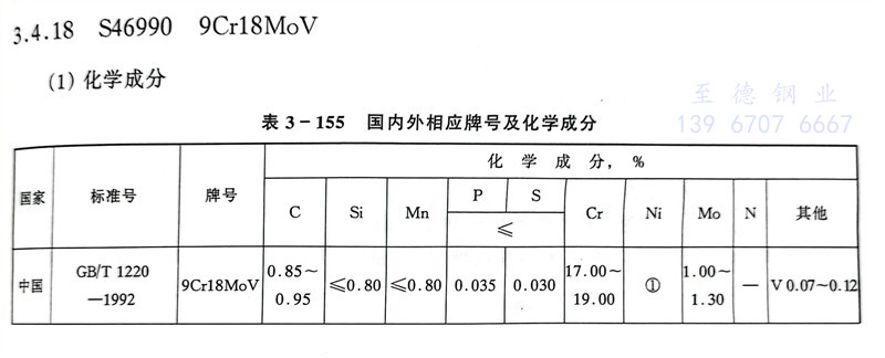 S46990 9Cr18MoV 不銹鋼(gang)主(zhu)要(yao)特性和用途