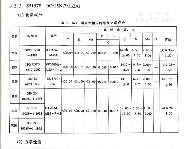S51578 0Cr15Ni7Mo2Al 不銹(xiu)鋼主(zhu)要特性和用途