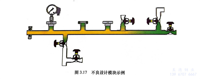 出于同(tong)樣的原因,兩條管道(dao)(dao)交叉時(shi)也(ye)要(yao)考慮(lv)合理(li)的布(bu)局(ju)(圖3.13)。不(bu)銹鋼管道(dao)(dao)的排(pai)布(bu)方式應確(que)保食品(pin)或清潔劑能夠從管道(dao)(dao)系(xi)統中排(pai)出。