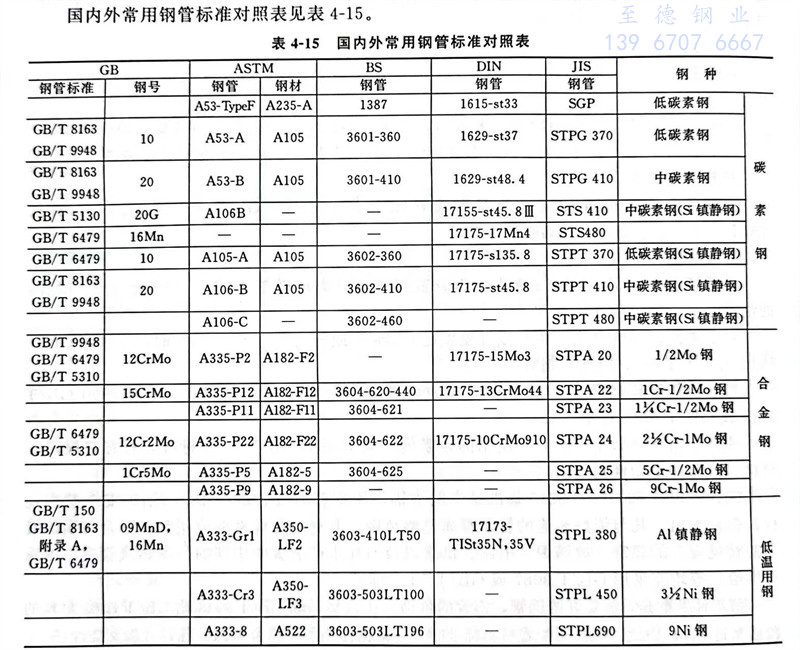 國(guo)內外常(chang)用(yong)鋼(gang)管標準(zhun)對照表見表4-15。