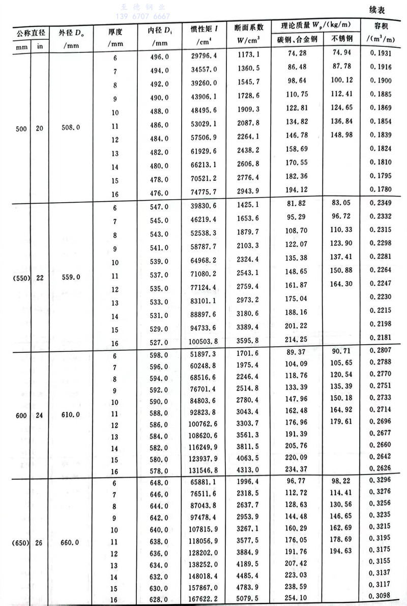 中國石化標準焊接鋼管尺寸及特性數據表