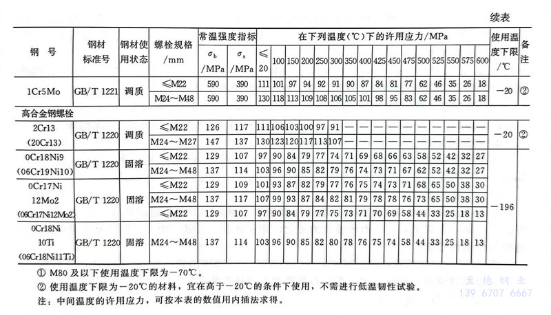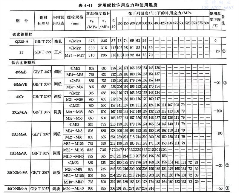 常用(yong)螺栓許(xu)用(yong)應力(li)和使用(yong)溫度見表4-41。