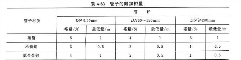 a. 管子的(de)附加裕量(表(biao)4-83)
