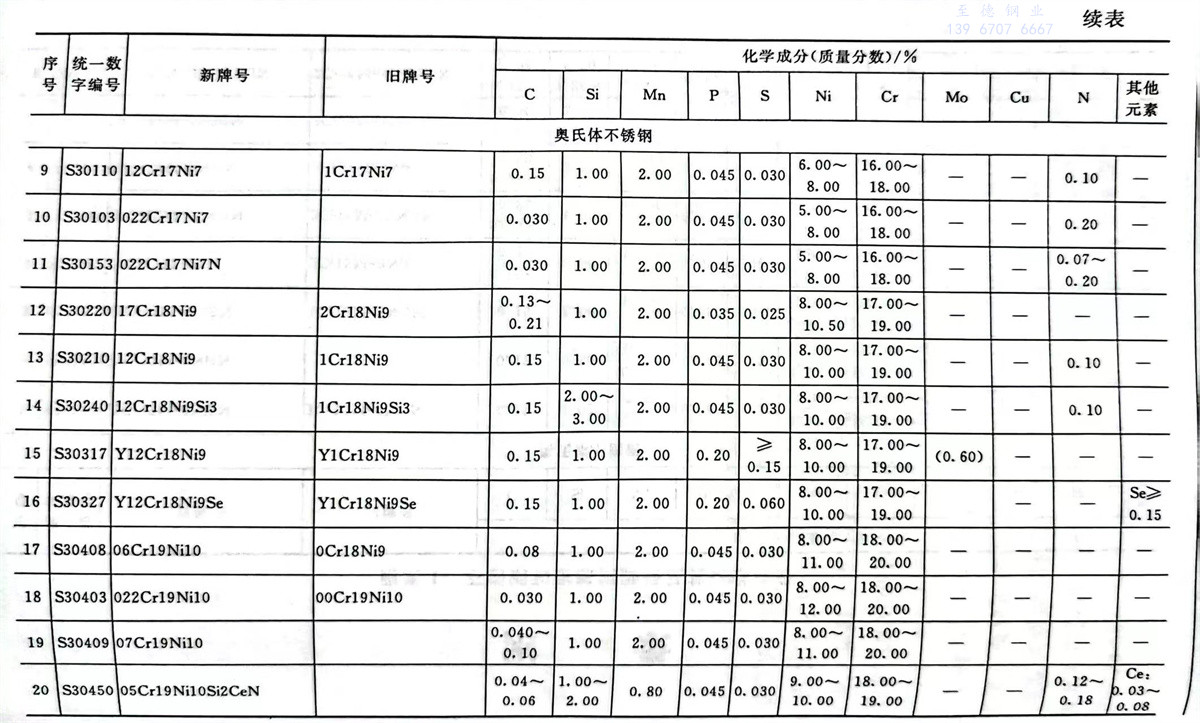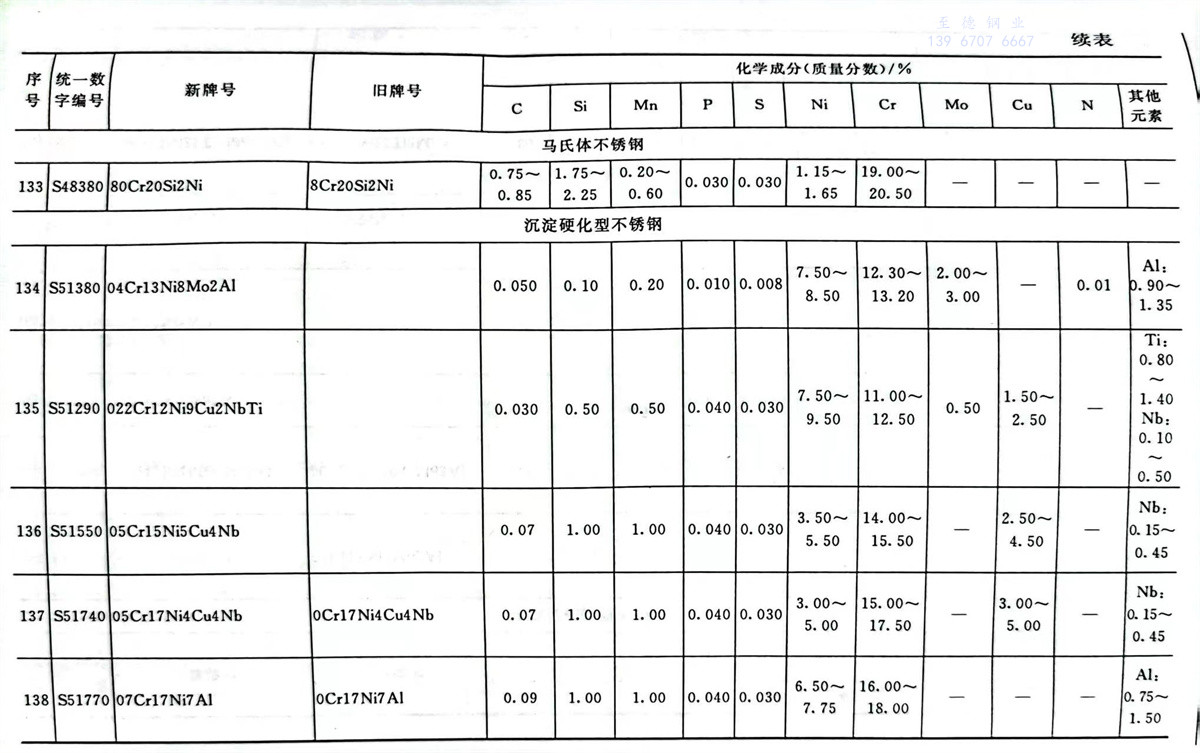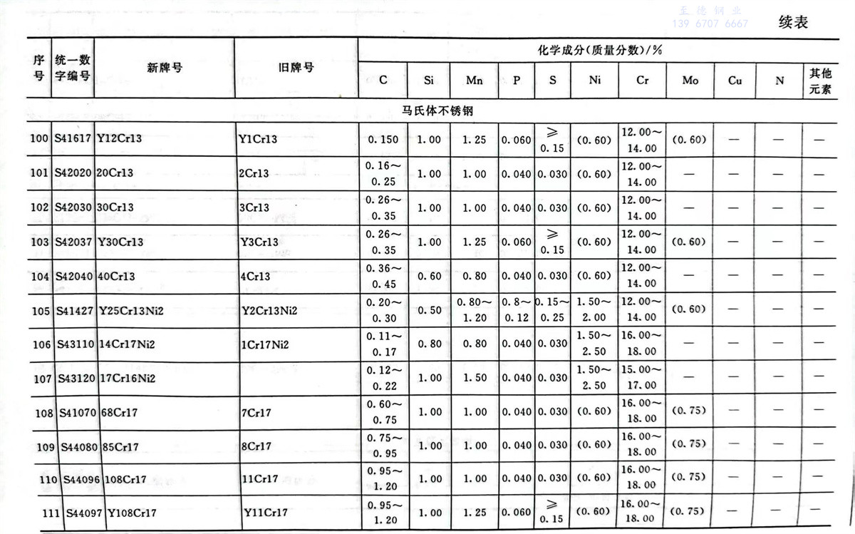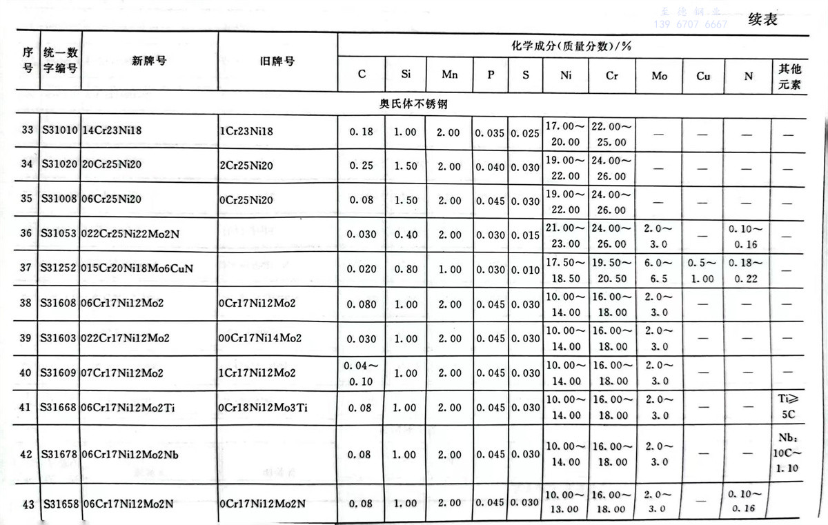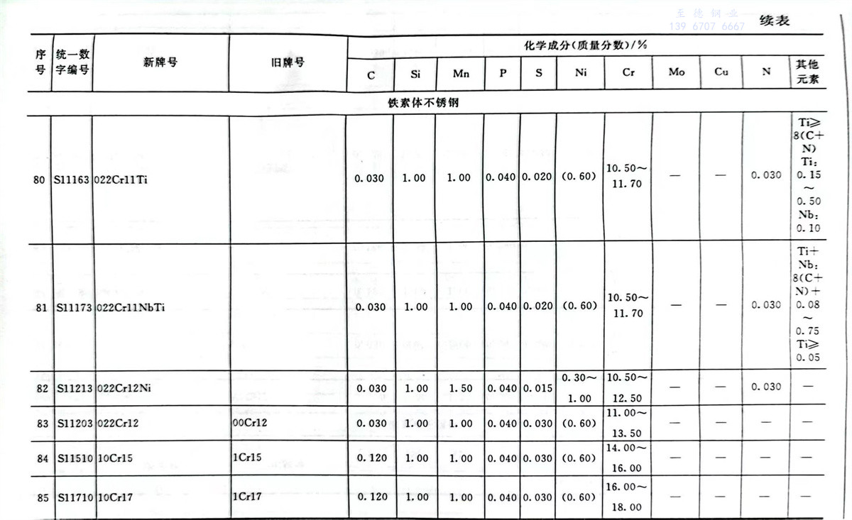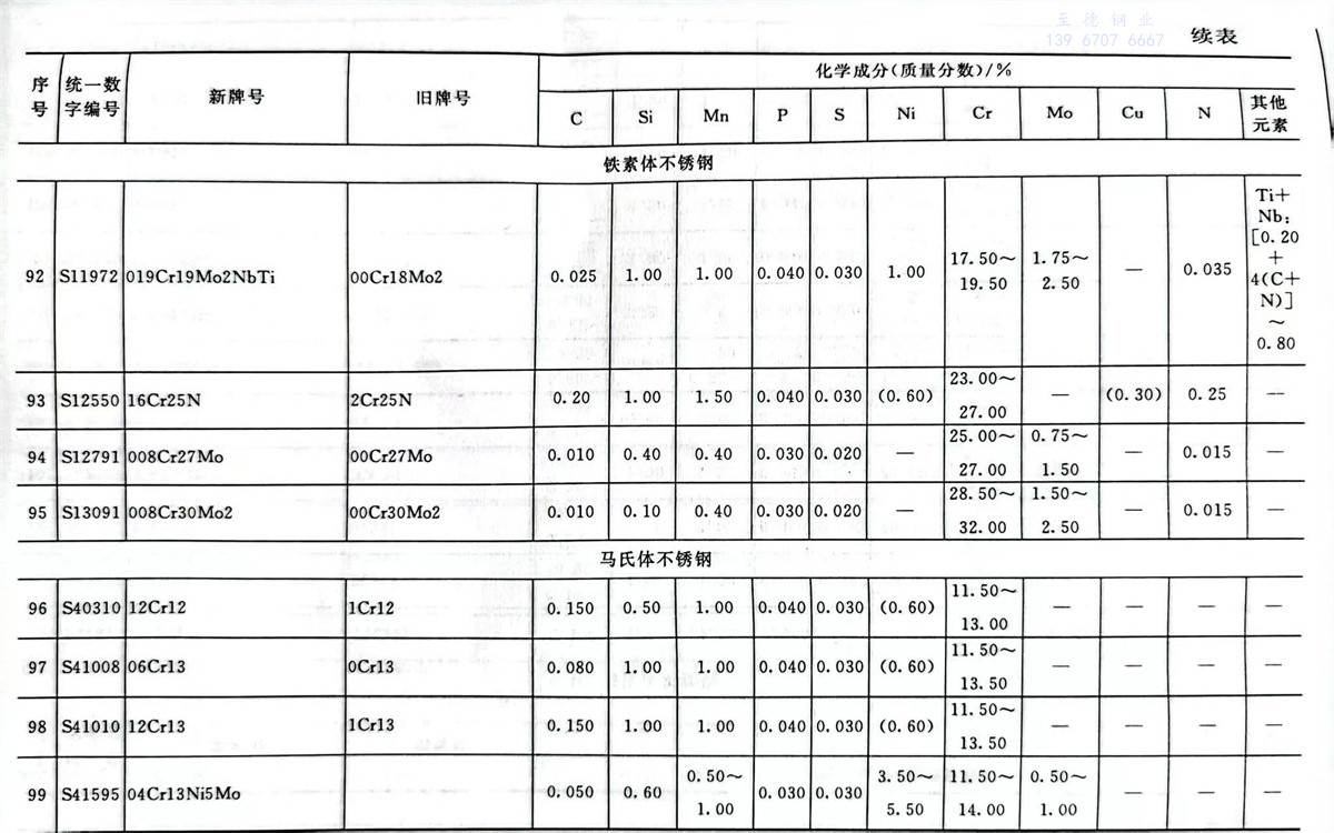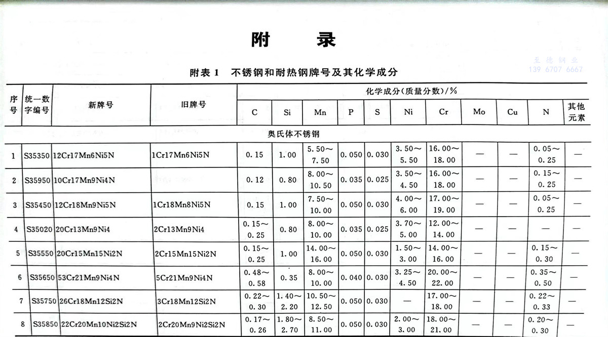 不銹鋼(gang)和耐(nai)熱鋼(gang)牌號及其化學(xue)成分表