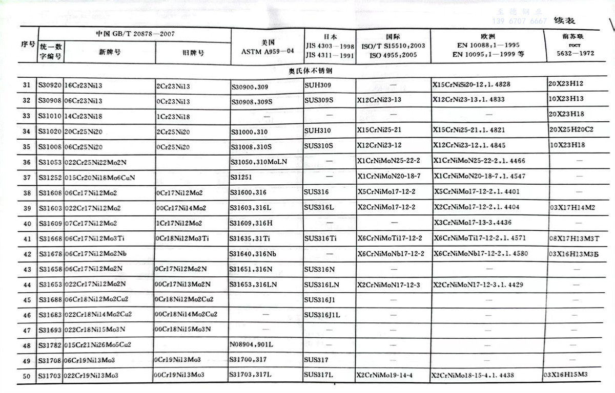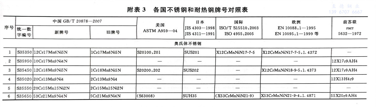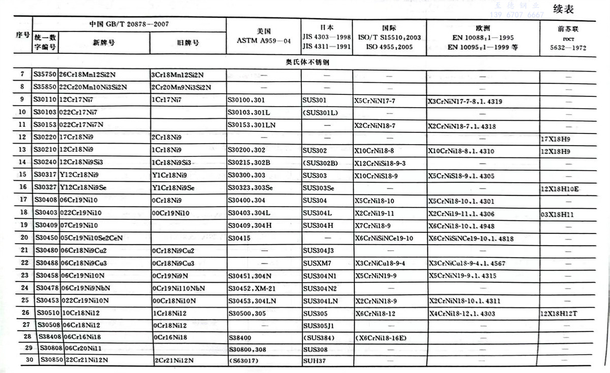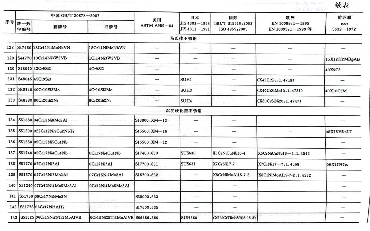 各(ge)國不(bu)銹鋼(gang)和耐熱(re)鋼(gang)牌號對照(zhao)表(biao)