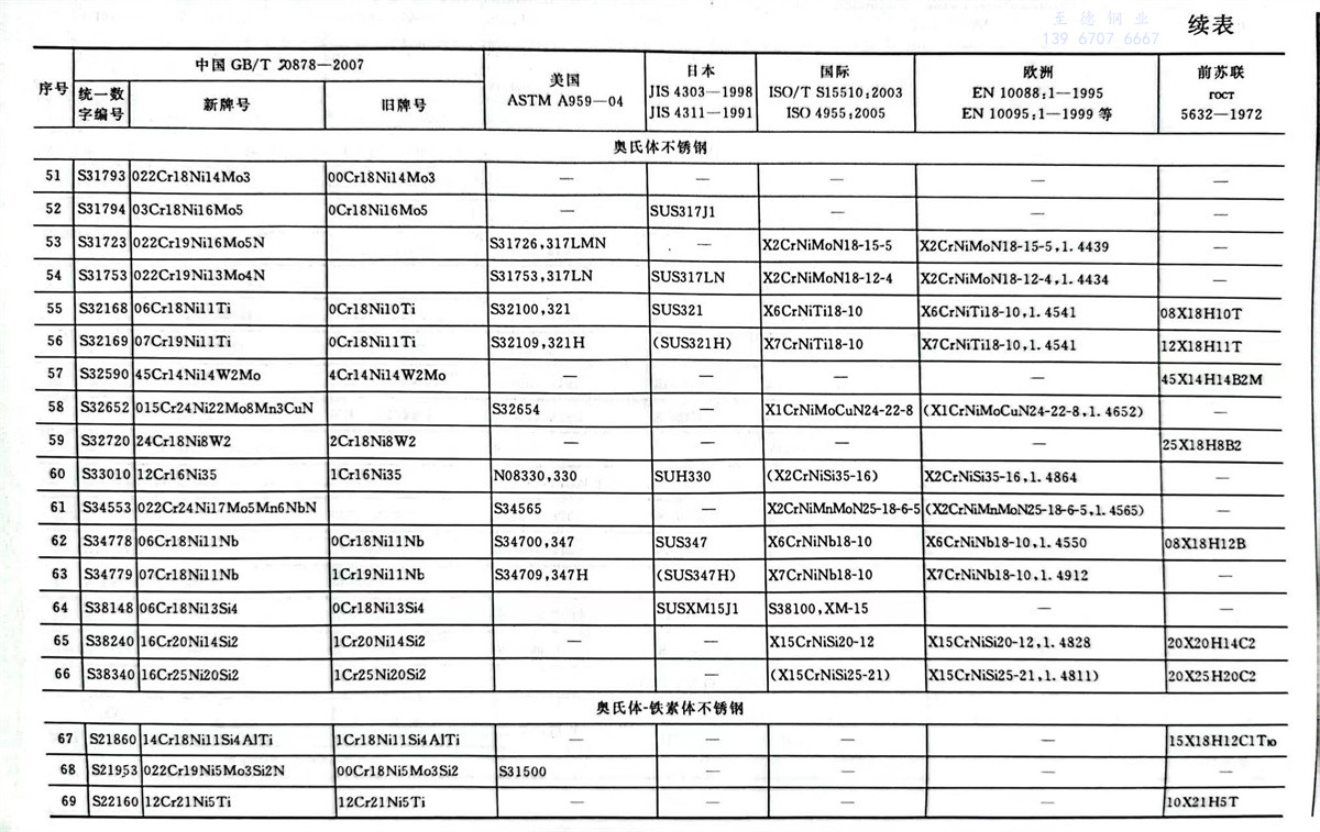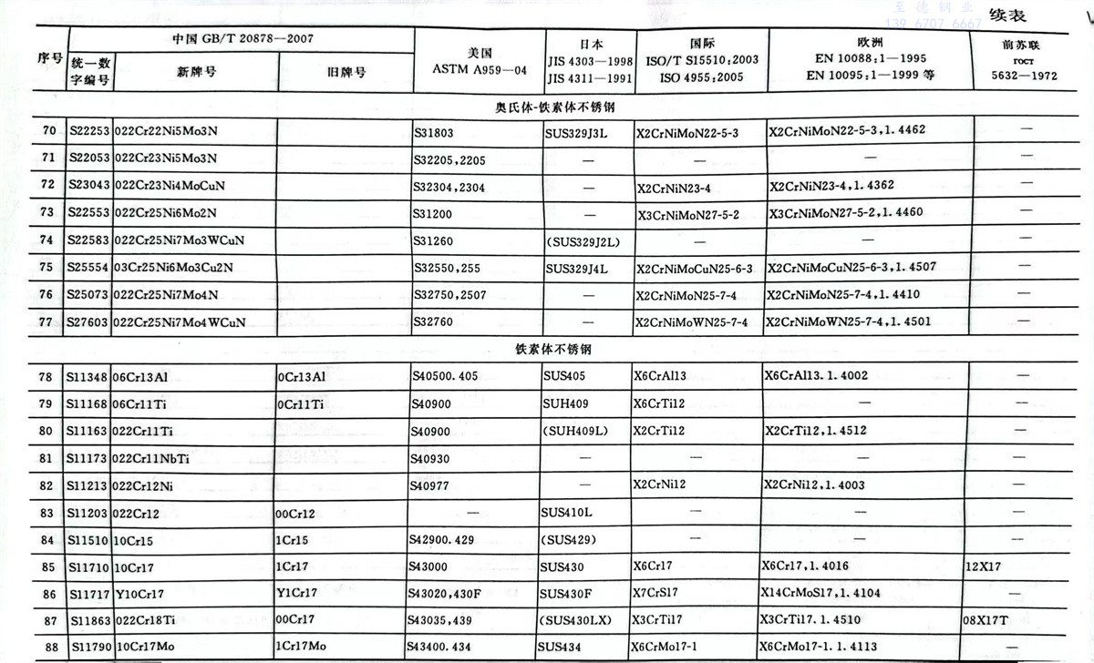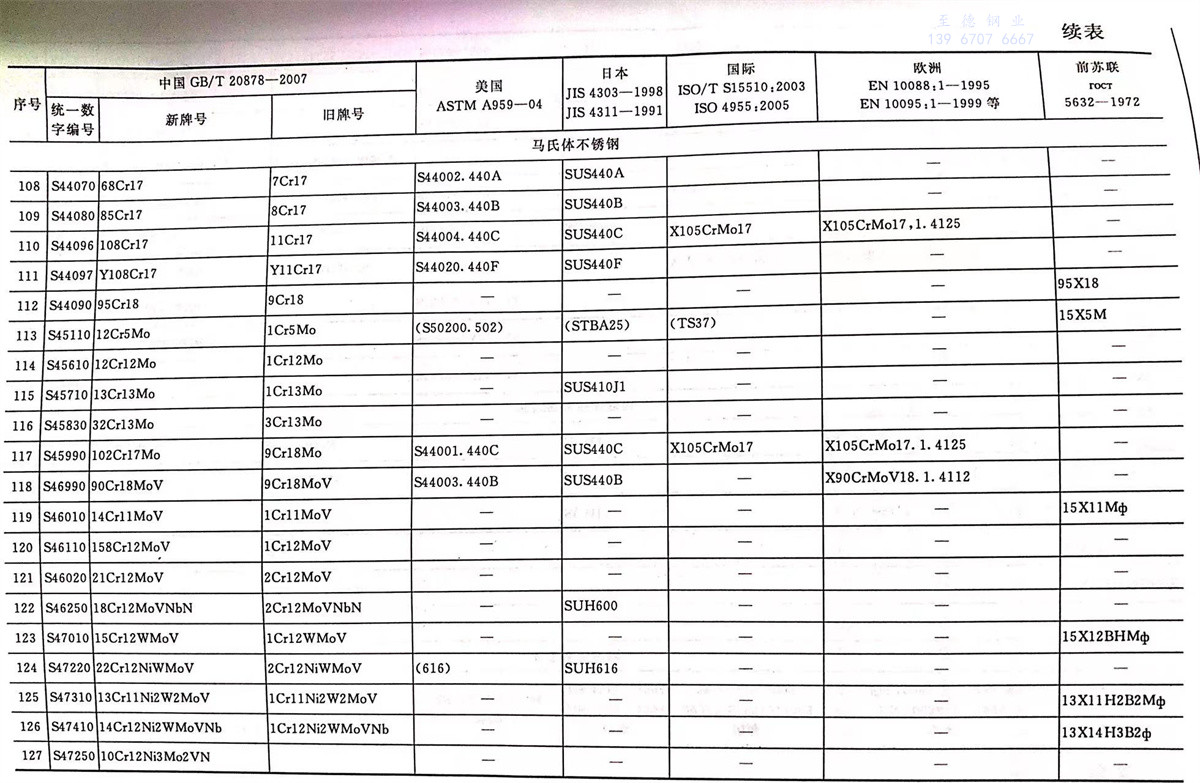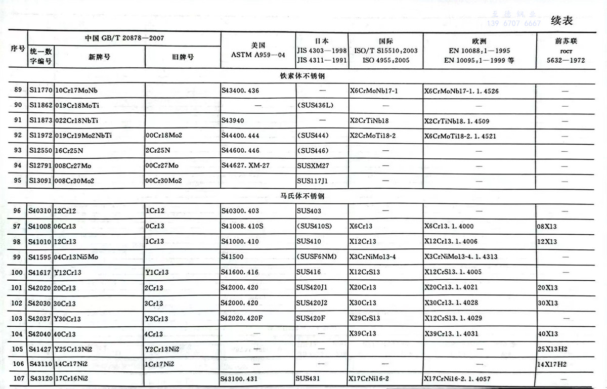 各(ge)國不(bu)銹鋼(gang)和耐熱(re)鋼(gang)牌號對照(zhao)表(biao)
